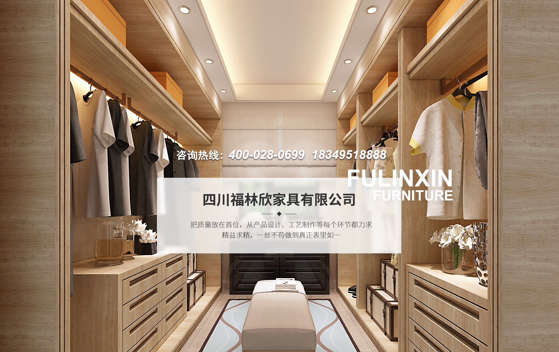 四川福林欣家具有限公司是一家專業(yè)生產(chǎn)整體衣柜、衣帽間、酒柜、鞋柜、電視墻、實木隔斷、免漆格柵、歐式美式墻板,免漆金屬條木飾面等多種系列的高端定制家具廠。
